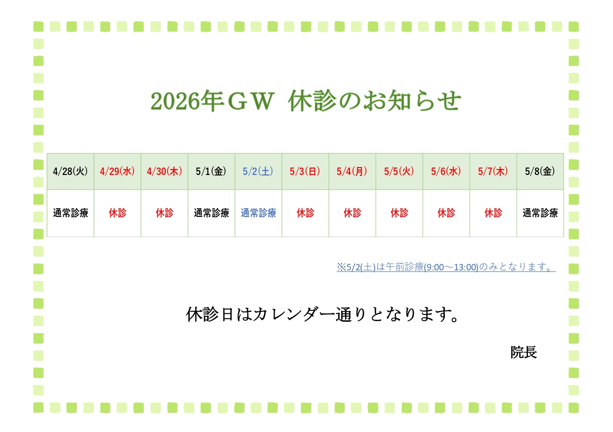 5月3日(日)休診